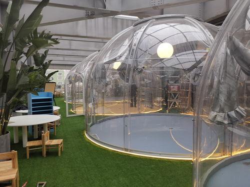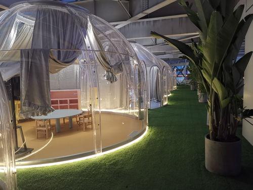 5. 灯光布置:如果想要增加浪漫氛围,可以在泡泡屋内布置一些LED灯带、彩灯等。